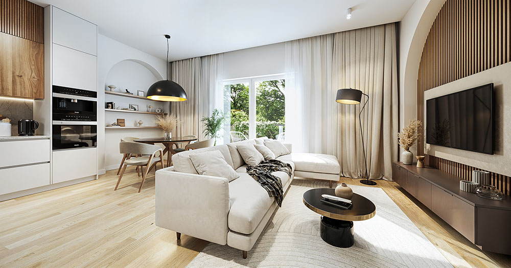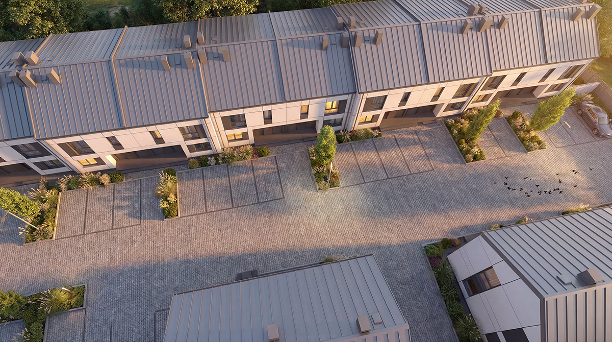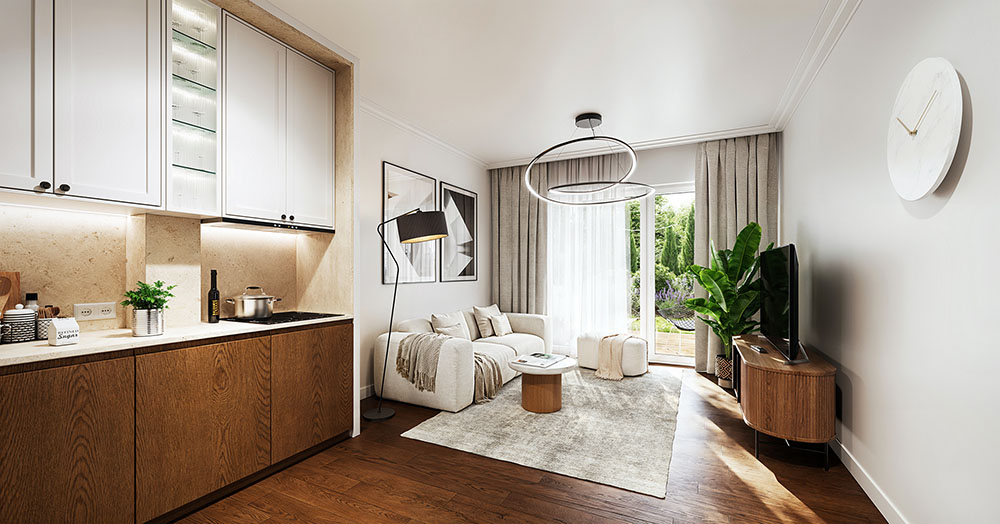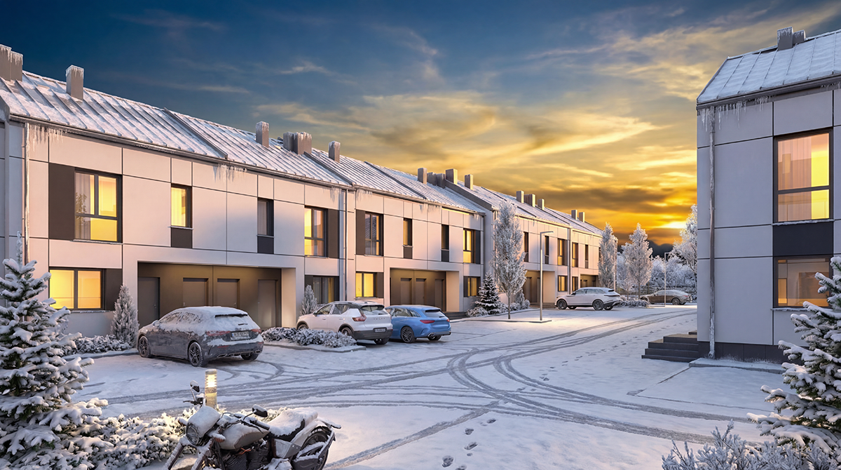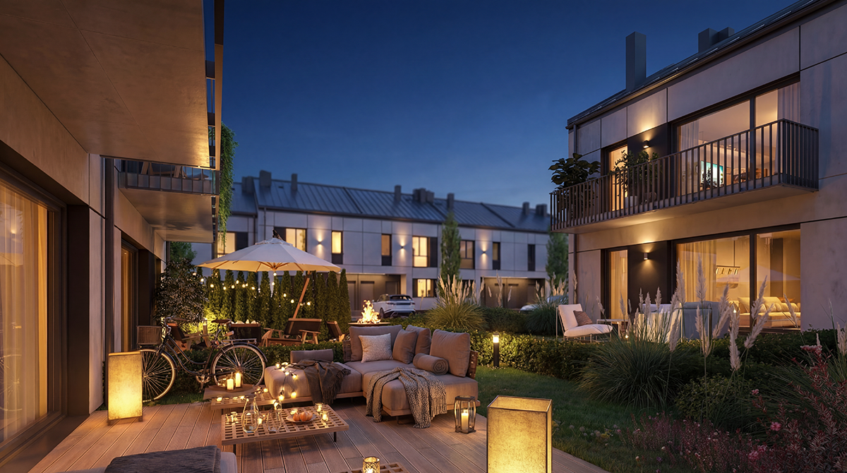 Dom typu S na piętrze to 63,17 m² powierzchni wewnętrznej zaprojektowanej z myślą o maksymalnej funkcjonalności. Wejście prowadzi przez wygodny wiatrołap do serca domu, słonecznego salonu z aneksem kuchennym, który dzięki ogrzewaniu podłogowemu jest bardzo ustawny i pozwala na dowolną aranżację mebli. Bezpośrednim przedłużeniem salonu jest balkon, oferujący dodatkową przestrzeń na poranną kawę czy wieczorny odpoczynek. Obok strefy dziennej znajdują się dwa przestronne pokoje oraz funkcjonalna łazienka. Wybierając dom typu S, zyskujesz również praktyczny schowek, który ułatwia zachowanie porządku i uwalnia pokoje od zbędnych przedmiotów.