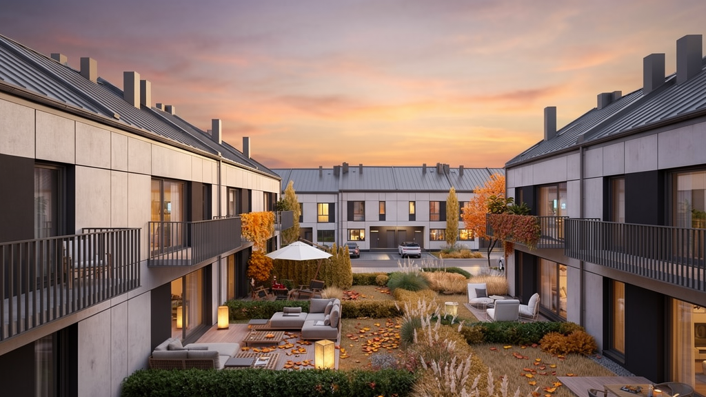 Dom typu M na piętrze to 69,55 m² powierzchni wewnętrznej zaprojektowanej z myślą o maksymalnej funkcjonalności. Wejście prowadzi przez wygodny wiatrołap do serca domu, słonecznego salonu z aneksem kuchennym, który dzięki ogrzewaniu podłogowemu jest niesamowicie przestronny i pozwala na dowolną aranżację mebli. Obok strefy dziennej znajdują się dwa pokoje oraz funkcjonalna łazienka. Układ salonu dopełnia ustawny balkon, oferujący dodatkową przestrzeń na poranną kawę czy wieczorny odpoczynek. Wybierając ten dom typu M, zyskujesz również praktyczny schowek, który ułatwia zachowanie porządku i uwalnia pokoje od zbędnych przedmiotów.