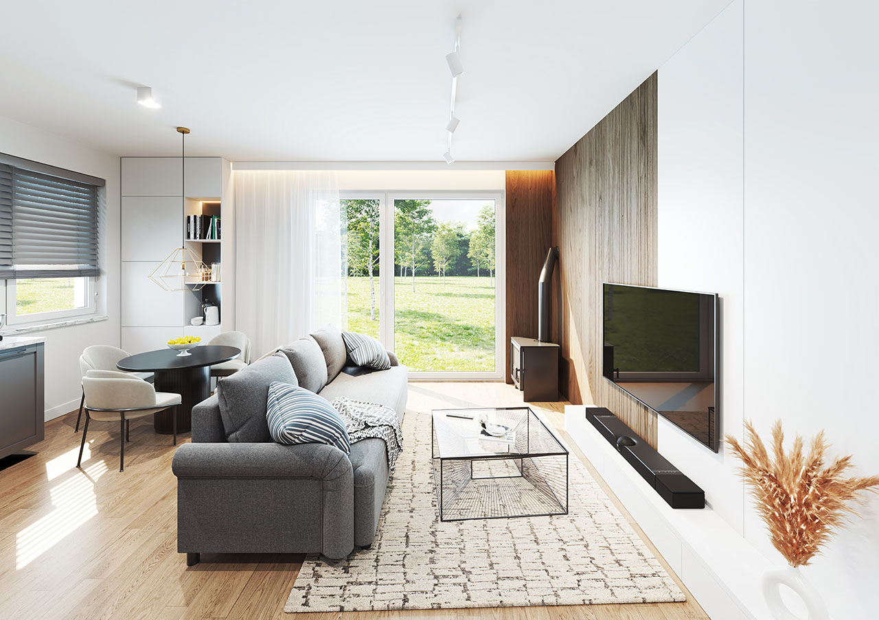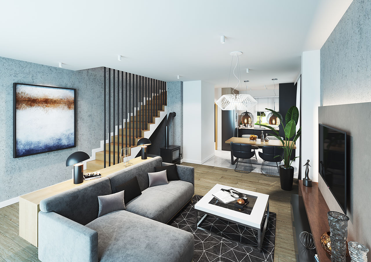 Dom M+ ma wiele atutów. Przede wszystkim otwarta przestrzeń dzienna, z widokiem na bardzo duży ogród o pow. od 199m2 do 474m2 i bezpośrednim dostępem do niego, zapewniająca możliwość cieszenia się życiem z dala od miejskiego zgiełku. To miejsce, które może spełnić marzenia zarówno Rodzin jak i Singli. Stwórz wyjątkowy klimat i atmosferę w domu wyposażonym zarówno w kominek jak i klimatyzację.