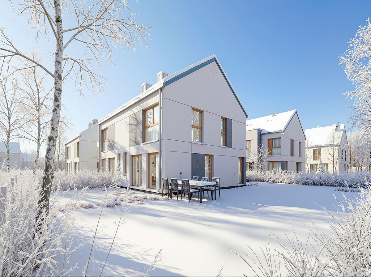 Dom wyposażony jest w klimatyzację, ogrzewanie podłogowe oraz instalację pod montaż kominka. Dzięki takim rozwiązaniom komfort pozostaje na najwyższym poziomie o każdej porze roku, a dom jest w pełni przygotowany do dopasowania do indywidualnych oczekiwań, również pod kątem ekologicznych rozwiązań. Wyobraź sobie poranki z kubkiem kawy w ogrodzie, który może mieć nawet do 608 m², idealnym na relaks, zabawę z dziećmi, własne zioła i warzywa albo letnie spotkania przy grillu.
